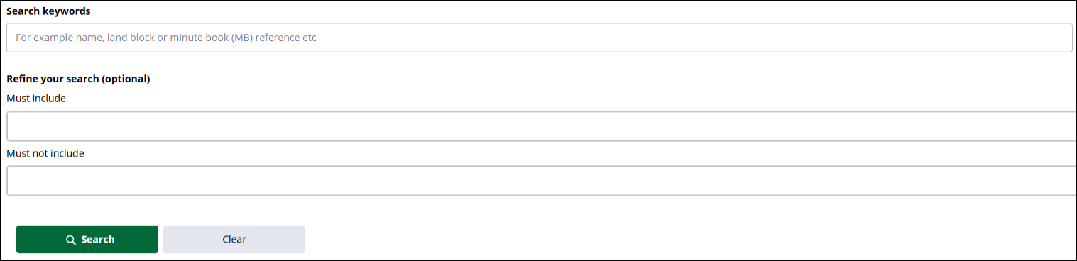 Pātaka Whenua has different types of searches available to help you find what you need – Near Match Search and Exact Match Search.